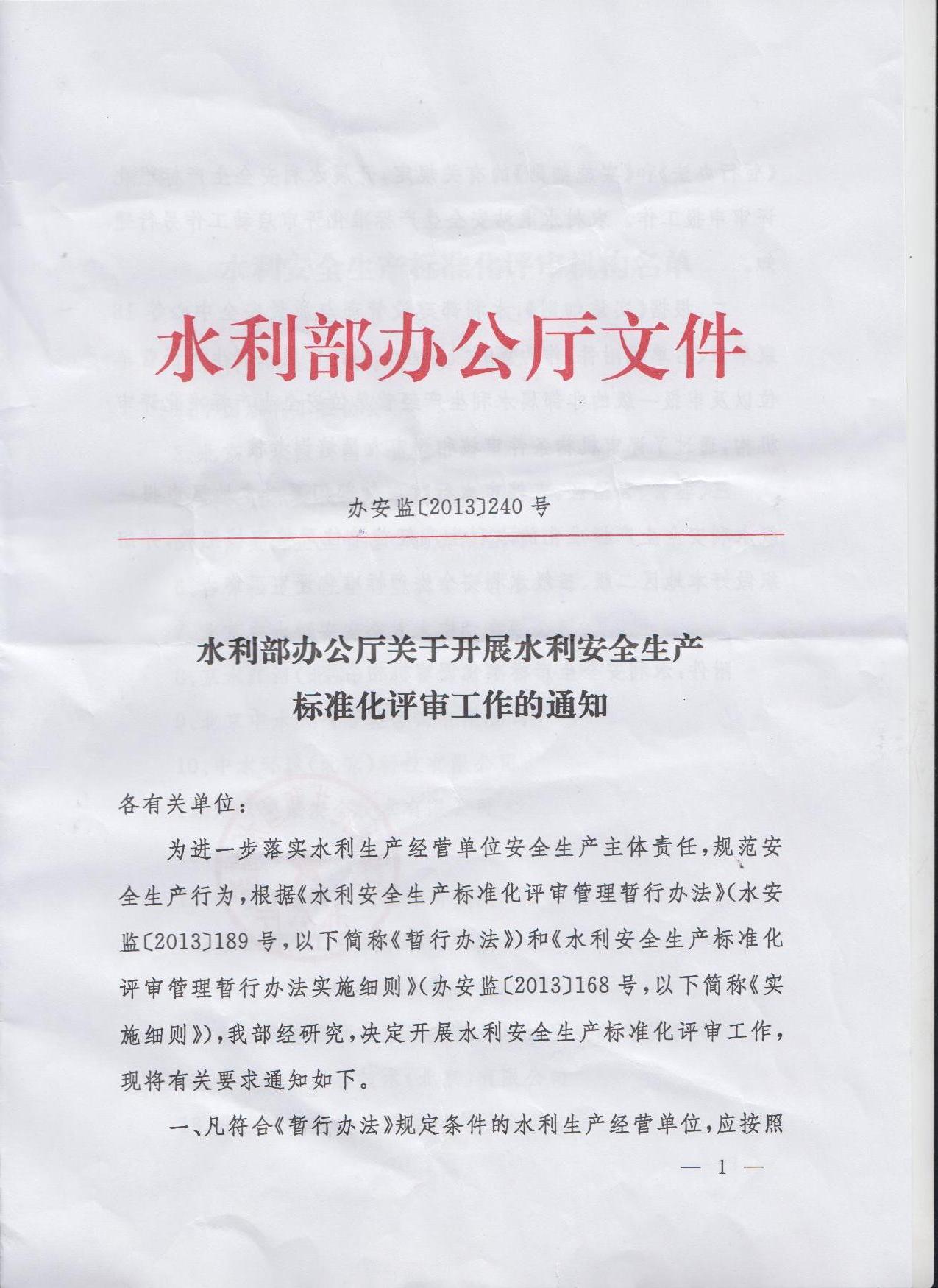 水利安全生產(chǎn)標(biāo)準(zhǔn)化